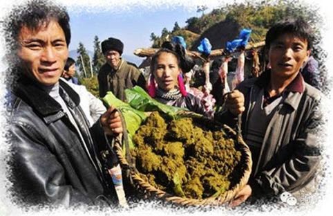 Người Kiềm, Trung Quốc cho bò ăn cỏ và thảo dược trước khi mổ. Sau đó họ vắt thức ăn mà bò chưa tiêu hóa hết để lấy chất lỏng đặc sệt.