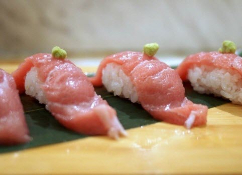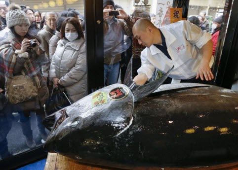 Những lát sushi nhỏ làm từ cá ngừ vây xanh được mua tại các cuộc đấu giá hàng năm ở chợ cá Tsukiji của Nhật Bản có mức giá lên tới 65 USD, tương đương 1,3 triệu đồng.